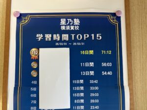 ● 先週は、ある中3生が毎日3時間以上の自習!
