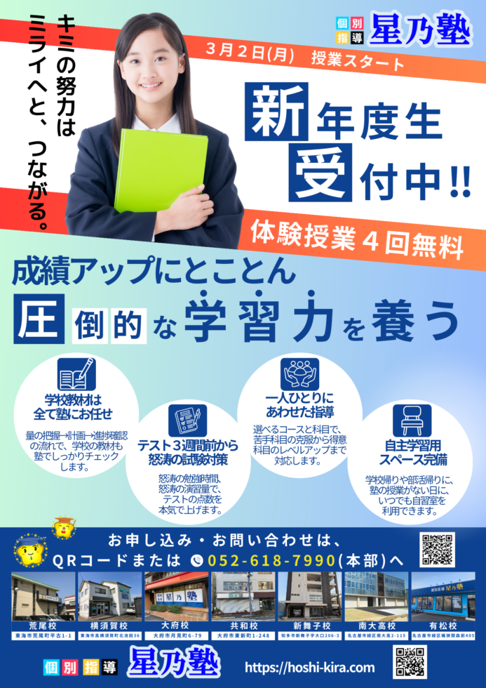 星乃塾の授業について、テスト対策について、受験指導について、料金について、何でもお聞き下さい☆彡