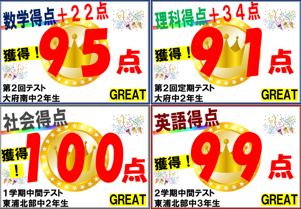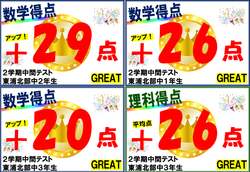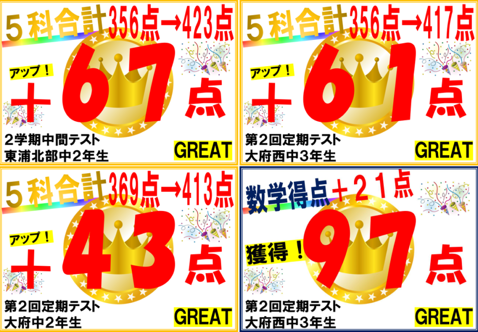 校舎にもみんなの今までの頑張り掲示中!是非見に来てください!!